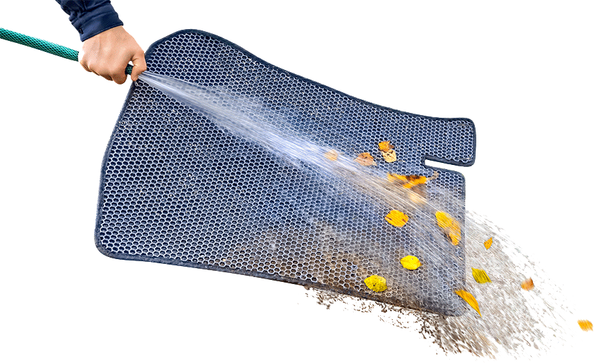 Маленький размер ячейки позволяет поверхностному натяжению воды удерживать жидкость при наклоне, порой даже на перевернутом коврике. Наши коврики легко доставать из салона без риска разлить содержимое.